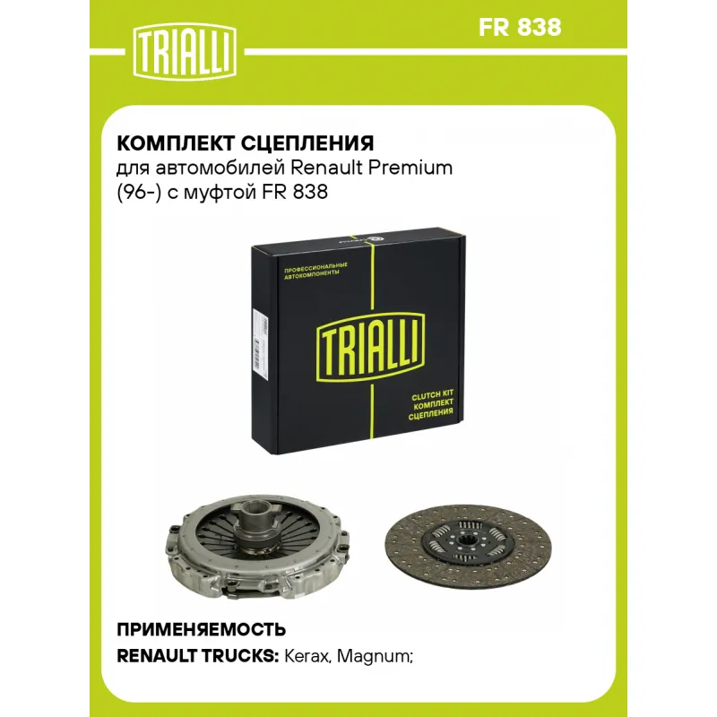 Комплект сцепления для автомобилей Renault Premium (96-) с муфтой FR 838 TRIALLI