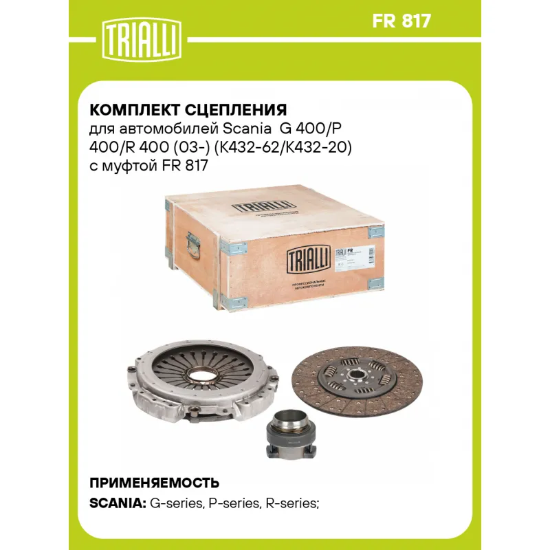 Комплект сцепления для автомобилей Scania G 400/P 400/R 400 (03-) (K432-62/K432-20) с муфтой FR 817 TRIALLI