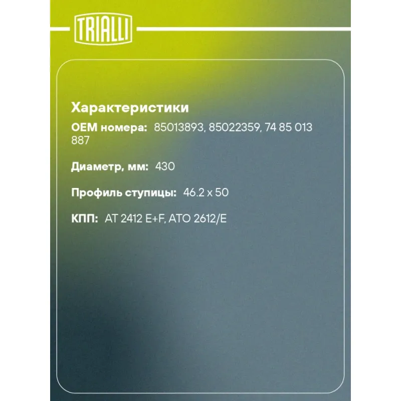 | Профиль ступицы | 46.2 x 50 |