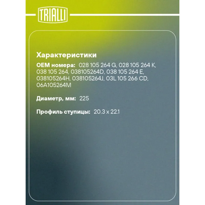 | Диаметр, мм | 225 |
