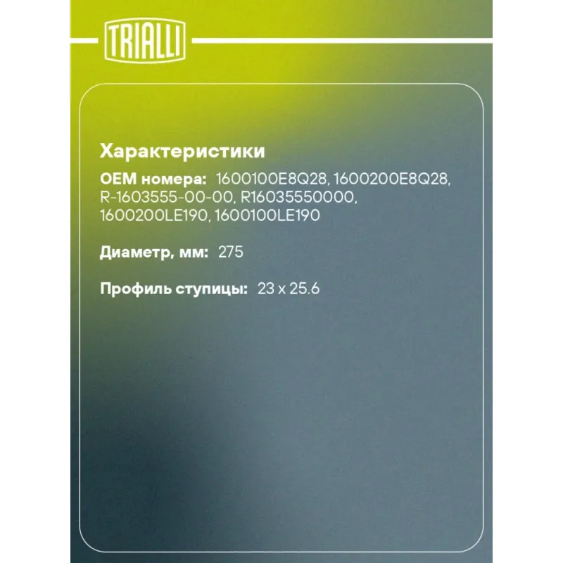 Комплект сцепления в сборе для автомобилей КамАЗ Компас 5 (23-) с муфтой Характеристики: Артикул: FR 0714 OEM номера: 1600100E8Q28, 1600200E8Q28, R-1603555-00-00 Профиль ступицы: 23 x 25.6 Число зубцов, шт.: 24 Диаметр, мм: 275 Гарантийный срок: 2 года/60 000 км Количество на автомобиль: 1 Товарная линейка: BLACK Комплектация:... Читать полностью →