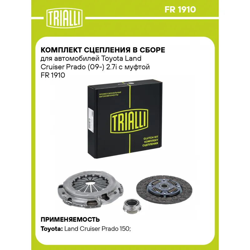 Комплект сцепления в сборе для автомобилей Toyota Land Cruiser Prado (09-) 2.7i с муфтой FR 1910 TRIALLI