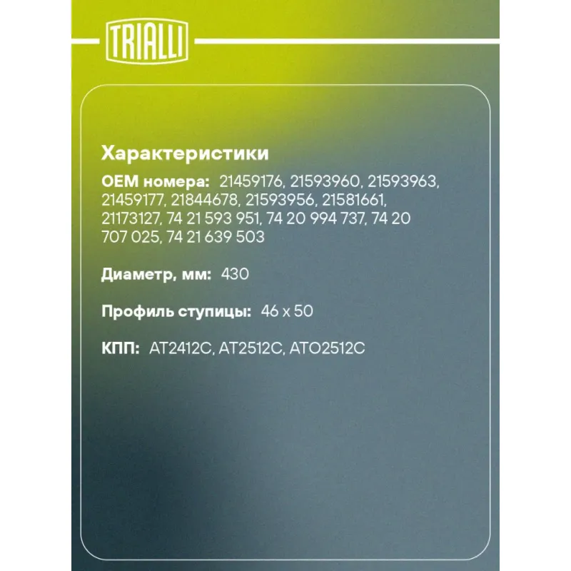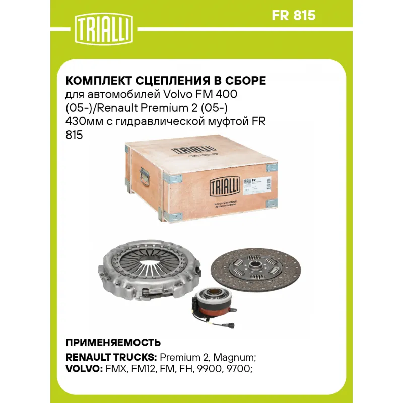 Комплект сцепления в сборе для автомобилей Volvo FM 400 (05-)/Renault Premium 2 (05-) 430мм с гидравлической муфтой FR 815 TRIALLI