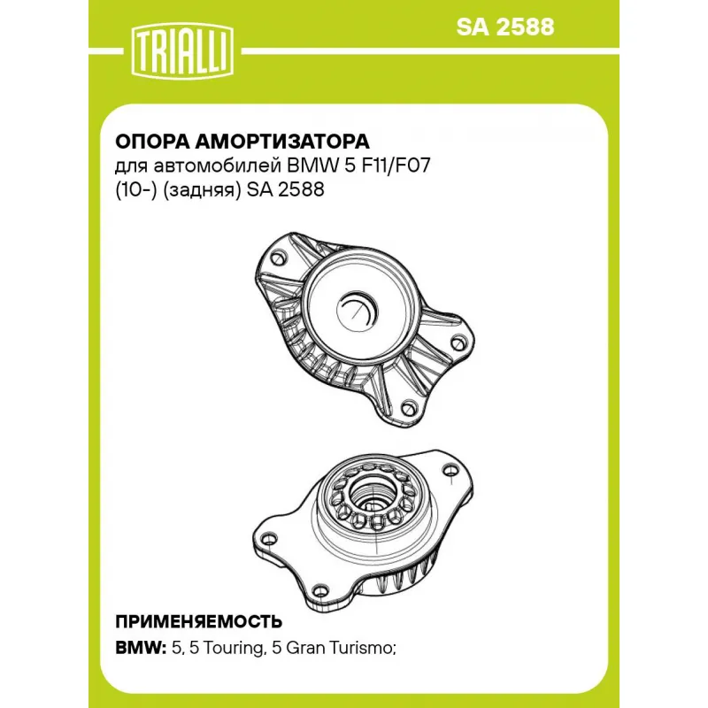 Опора амортизатора для автомобилей BMW 5 F11/F07 (10-) (задняя) SA 2588 TRIALLI