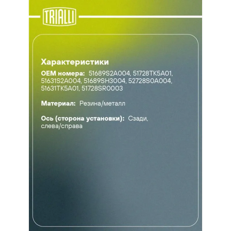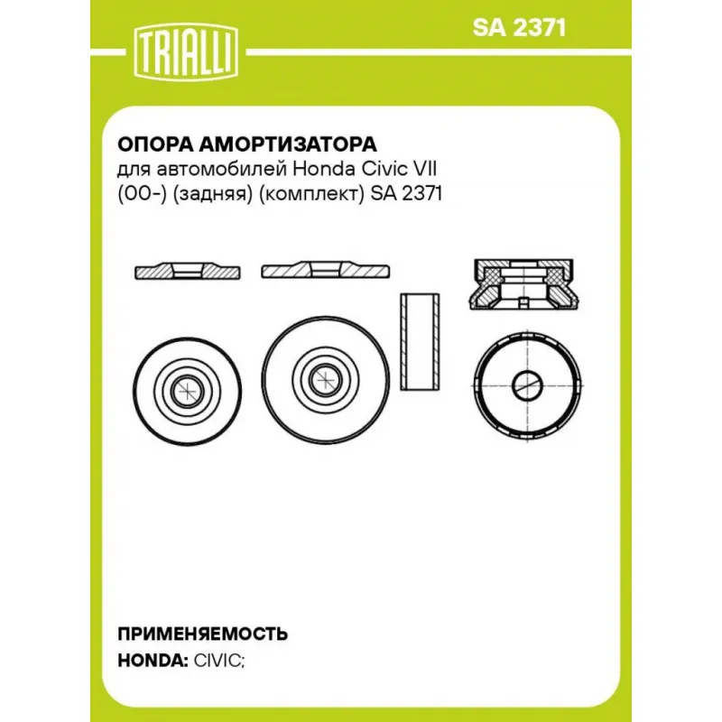 Опора амортизатора для автомобилей Honda Civic VII (00-) (задняя) (комплект) Характеристики: Артикул: SA 2371 OEM номера: 51689S2A004, 51728TK5A01, 51631S2A004, 51689SH3004, 52728S0A004, 51631TK5A01, 51728SR0003 Материал: Резина/металл Ось (сторона установки): Сзади, слева/справа Гарантийный срок: 2 года/60 000 км Товарная линей... Читать полностью →
