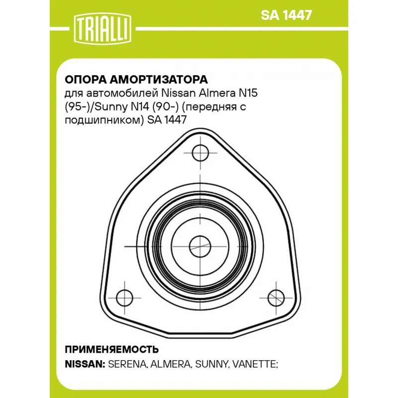 Опора амортизатора для автомобилей Nissan Almera N15 (95-)/Sunny N14 (90-) (передняя с подшипником) SA 1447 TRIALLI