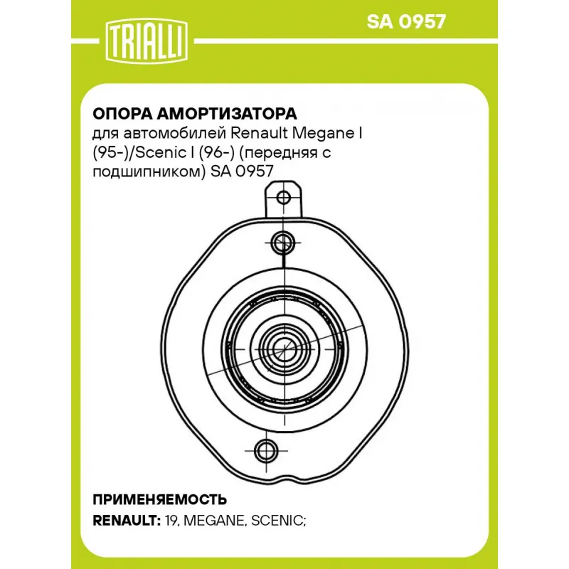 Опора амортизатора для автомобилей Renault Megane I (95-)/Scenic I (96-) (передняя с подшипником) Характеристики: Артикул: SA 0957 OEM номера: 7700780875, 7700777654, 7700797666, 7700824022, 7700796766, 8671017908, 7701207797, 7700835254 Материал: Резина/металл Ось (сторона установки): Спереди, слева/справа Гарантийный срок: 2 года/60 000 км Товарная линейка: BLACK Количество на автомобиль: 2 Дополнительная информация: Упаковка изделия может отличаться от представленной на фото Комплектация: Подшипник - 1 шт Опора амортизационной стойки - 1 шт Болт - 2 шт Гайка - 1 шт Гарантия: от 1 года.
