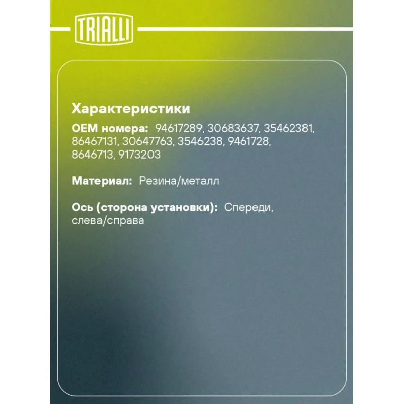 Опора амортизатора для автомобилей Volvo XC90 (02-)/S60 (00-) (передняя без подшипника) (нижняя часть) SA 1849 TRIALLI