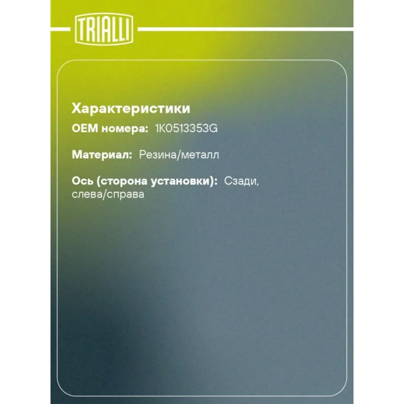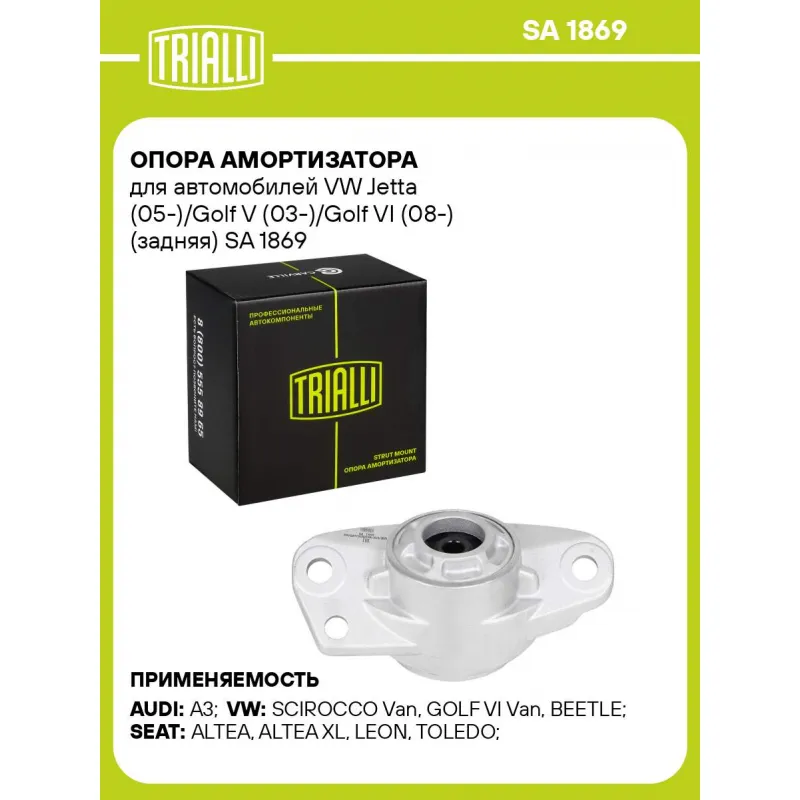 Опора амортизатора для автомобилей VW Jetta (05-)/Golf V (03-)/Golf VI (08-) (задняя) Характеристики: Артикул: SA 1869 OEM номера: 1K0513353G Материал: Резина/металл Ось (сторона установки): Сзади, слева/справа Гарантийный срок: 2 года/60 000 км Товарная линейка: BLACK Количество на автомобиль: 2 Дополнительная информация: Упако... Читать полностью →