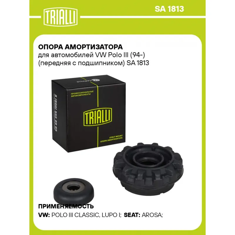 Опора амортизатора для автомобилей VW Polo III (94-) (передняя с подшипником) Характеристики: Артикул: SA 1813 OEM номера: 6N0412331A, 1J0412249 Материал: Резина/металл/пластик Ось (сторона установки): Спереди, слева/справа Гарантийный срок: 2 года/60 000 км Товарная линейка: BLACK Количество на автомобиль: 2 Дополнительная информация: Упаковка изделия может отличаться от представленной на фото Комплектация: Опора амортизационной стойки - 1 шт Подшипник - 1 шт Гарантия: от 1 года.