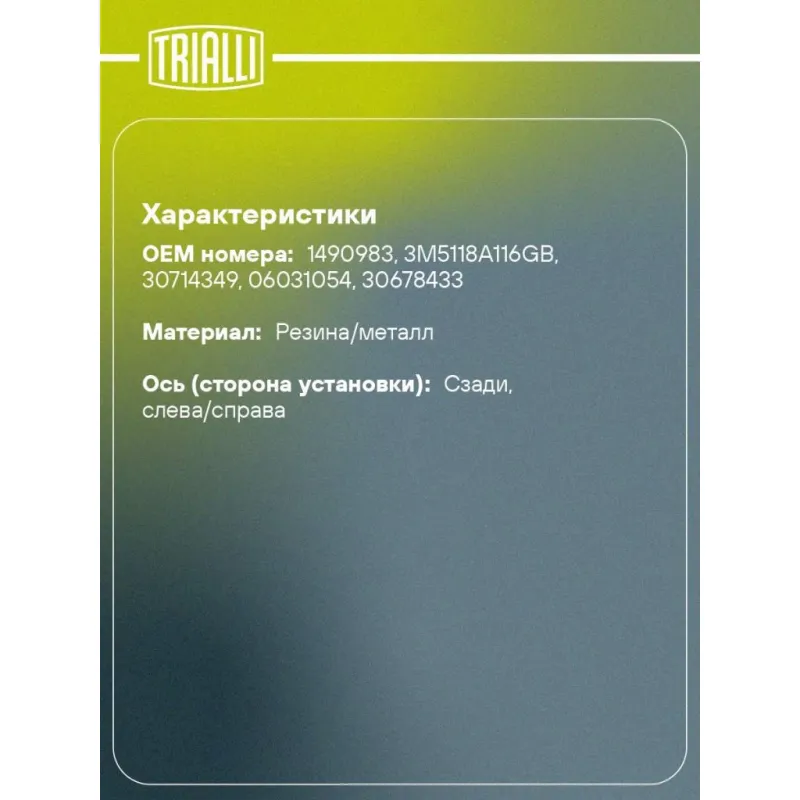 Опора амортизатора для автомобиля Ford Focus II (05-) (задняя) Характеристики: Артикул: SA 1064 OEM номера: 1490983, 3M5118A116GB, 30714349, 06031054, 30678433 Материал: Резина/металл Ось (сторона установки): Сзади, слева/справа Гарантийный срок: 2 года/60 000 км Товарная линейка: BLACK Количество на автомобиль: 2 Дополнительная... Читать полностью →
