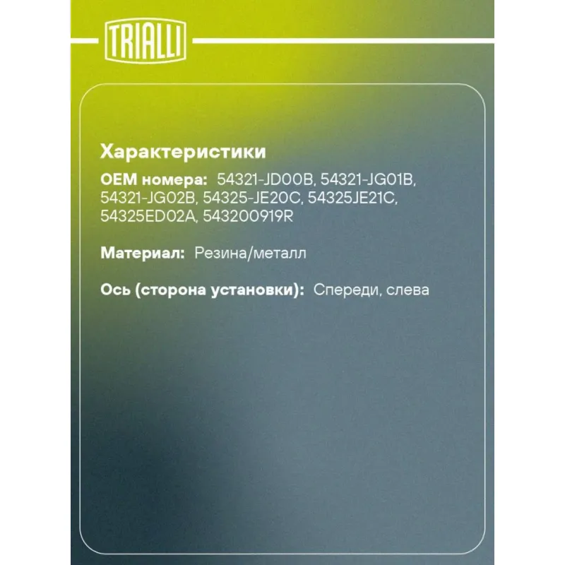 Опора передней левой стойки без подшипника для автомобиля Nissan Qashqai (06-) SA 1468 TRIALLI