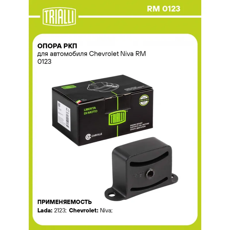 Опора РКП для автомобиля Chevrolet Niva Характеристики: Артикул: RM 0123 OEM номера: 2123-1801010 Гарантийный срок: 2 года/60 тыс. Товарная линейка: BLACK Количество на автомобиль: 1 Материал: Резина/металл Подходит для авто: ВАЗ 2123 Chevrolet Niva (02-) Для проверки применяемости отправьте VIN автомобиля через вкладку "Есть вопросы о товаре?" Комплектация: Опора РКП - 1 шт Гарантия: от 1 года.