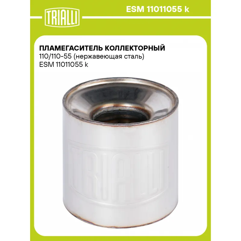 Пламегаситель коллекторный 110/110-55 (нержавеющая сталь) Характеристики: Артикул: ESM 11011055 k OEM номера: 110x110 Материал: Нержавеющая сталь AISI 430 Особенности конструкции:: Труба перфорированная, шерсть нержавеющая, набивка жаро-шумопоглощающая Длина, мм: 110 Диаметр корпуса, мм: 110 Гарантийный срок: 2 года/60 тыс. Диам... Читать полностью →