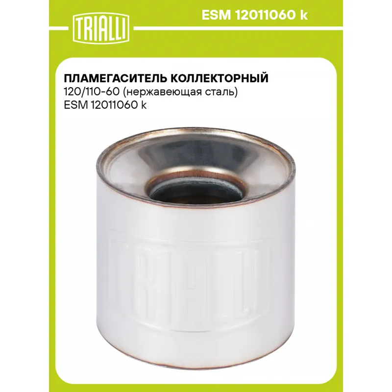 Пламегаситель коллекторный 120/110-60 (нержавеющая сталь) Характеристики: Артикул: ESM 12011060 k OEM номера: 120x110 Материал: Нержавеющая сталь AISI 430 Особенности конструкции:: Труба перфорированная, шерсть нержавеющая, набивка жаро-шумопоглощающая Длина, мм: 110 Диаметр корпуса, мм: 120 Гарантийный срок: 2 года/60 тыс. Диам... Читать полностью →