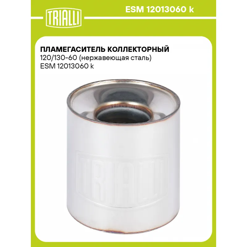 Пламегаситель коллекторный 120/130-60 (нержавеющая сталь) Характеристики: Артикул: ESM 12013060 k OEM номера: 120x130 Материал: Нержавеющая сталь AISI 430 Особенности конструкции:: Труба перфорированная, шерсть нержавеющая, набивка жаро-шумопоглощающая Длина, мм: 130 Диаметр корпуса, мм: 120 Гарантийный срок: 2 года/60 тыс. Диам... Читать полностью →