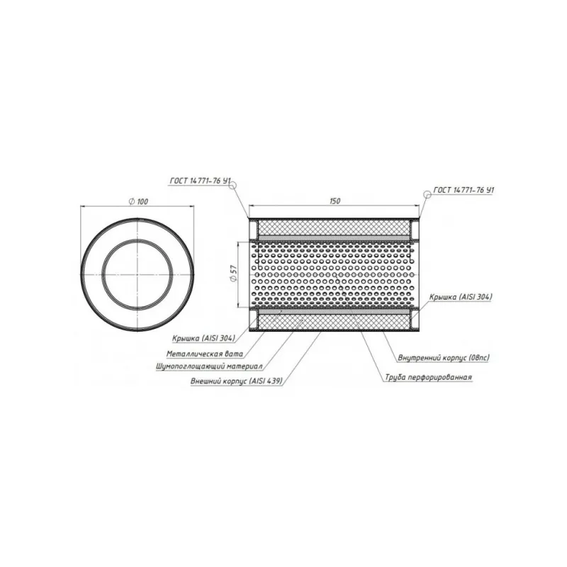Особенности конструкции: Труба перфорированная и шумопоглощающий материал