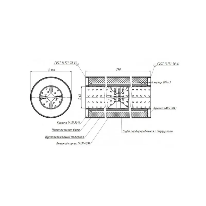 Пламегаситель универсальный 100/290-60 с перфорированным диффузором (нержавеющая сталь) Характеристики: Артикул: ESM 10029060d OEM номера: 286102E150, 28950337630, 286502E170, 287001F120, 285102BPF2, 286102Y500, 286502Y500, 287003U500, 286102S100, 289602G900, 286502S100, 287002Y100, 286102S300, 286502S300, 287002Y300, 28610-2E100, 2895037630, 286502E151, 28700-2E151, 286502E651, 287002E350, 289902F000, 14002JD90A, 20010JD200, 20100BR20A, 20010JD000, 20100JD00A, 1741037320, 1742037040, 1743037371, 2505126020, 1741026400, 1743026743, 2505126080, 1714137100, 1714037321, 1742037120, 1743037521, 2505126130, 1741026470, 2505128340, 1741028582, 1742028712, 1743037372, 20010JD20B, 208A0JG10B, 20010BR40A, 20100JD71B, 1583A028, 1570A842, 1570B175, 1571A703, 1741028551, 1742028470, 1743028720, 28610-C9200, 28610-M0200, 28610-M0250, 28710-M0200, 28710-M0250, 17410-0V390, 17420-0V340, 17430-0V340, 20010JG02A, 20100JG05A, 208A0JD50A, 20100JG70A, 18190r07e00, 18210-SWY-E11, 18160-R07-E00, 18220-SWY-E01, 18307-SWY-E01, 2851023820, 28610-2E100, 28950-23756, 28650-2E120, 28700-2E120, 28650-2E150, 28700-2E151, 17410-0H450, 17420-36120, 17430-36170, 1570A94, 1570A094, 1570A837, 1571A622, 140029Y920, 200108H70A, 200188H70A, 203008H31A, 201008H70A, 1742028320, 1743028510, 1K0254510X, 1K0253209BJ, 1Z3253609AE, 1K0253209CS, 1K5253609E, 1Z0253609AE, 18160RZPG00, 18210SWWE01, 18210-S10A01, 18160-P3FG10, 18160PHKG00, 18220-S10A03, 18030-S10A00, MN180083, MN156565, MN180617, 1570B398, 1571B053, 893253409B, 96345722, 13252425, A131201210FA, T111201110, 1234018, 1253560, 1329718, 1677751, 1364172, 30681701, 1329731, 1201210F00B1, 1201010F00, 1571B134, 6RU253609, 6RU253611B, 6RU253609S, 6RU253609T , 6RU253611E, 4A0253609A, 57253409C Количество на автомобиль: 1 Особенности конструкции:: Труба перфорированная с диффузором и шумопоглощающий материал Гарантийный срок: 2 года/60 тыс. Длина, мм: 290 Диаметр корпуса, мм: 100 Диаметр перфор. трубы (мм): 62 Материал: Нержавеющая сталь AISI 439 Товарная линейка: BLACK Комплектация: Пламегаситель с перфорированным диффузором - 1 шт Гарантия: от 1 года.