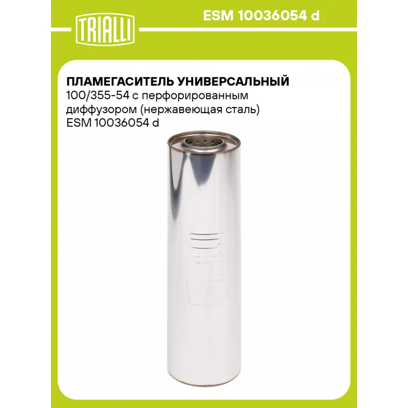 Пламегаситель универсальный 100/355-54 с перфорированным диффузором (нержавеющая сталь) Характеристики: Артикул: ESM 10036054 d OEM номера: 10036054 d Материал: Нержавеющая сталь AISI 430 Особенности конструкции:: Труба перфорированная с диффузором, шерсть нержавеющая, набивка жаро-шумопоглощающая Длина, мм: 355 Диаметр корпуса,... Читать полностью →