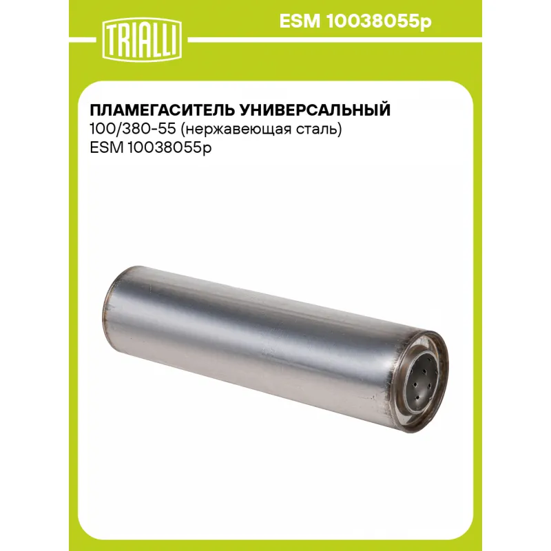 Пламегаситель универсальный 100/380-55 (нержавеющая сталь) Характеристики: Артикул: ESM 10038055p OEM номера: 286102E150, 28950337630, 286502E170, 287001F120, 285102BPF2, 286102Y500, 286502Y500, 287003U500, 286102S100, 289602G900, 286502S100, 287002Y100, 286102S300, 286502S300, 287002Y300, 28610-2E100, 2895037630, 286502E151, 28700-2E151, 286502E651, 287002E350, 289902F000, 14002JD90A, 20010JD200, 20100BR20A, 20010JD000, 20100JD00A, 1741037320, 1742037040, 1743037371, 2505126020, 1741026400, 1743026743, 2505126080, 1714137100, 1714037321, 1742037120, 1743037521, 2505126130, 1741026470, 2505128340, 1741028582, 1742028712, 1743037372, 20010JD20B, 208A0JG10B, 20010BR40A, 20100JD71B, 1583A028, 1570A842, 1570B175, 1571A703, 1741028551, 1742028470, 1743028720, 28610-C9200, 28610-M0200, 28610-M0250, 28710-M0200, 28710-M0250, 17410-0V390, 17420-0V340, 17430-0V340, 20010JG02A, 20100JG05A, 208A0JD50A, 20100JG70A, 18190r07e00, 18210-SWY-E11, 18160-R07-E00, 18220-SWY-E01, 18307-SWY-E01, 2851023820, 28610-2E100, 28950-23756, 28650-2E120, 28700-2E120, 28650-2E150, 28700-2E151, 17410-0H450, 17420-36120, 17430-36170, 1570A94, 1570A094, 1570A837, 1571A622, 140029Y920, 200108H70A, 200188H70A, 203008H31A, 201008H70A, 1742028320, 1743028510, 1K0254510X, 1K0253209BJ, 1Z3253609AE, 1K0253209CS, 1K5253609E, 1Z0253609AE, 18160RZPG00, 18210SWWE01, 18210-S10A01, 18160-P3FG10, 18160PHKG00, 18220-S10A03, 18030-S10A00, MN180083, MN156565, MN180617, 1570B398, 1571B053, 893253409B, 96345722, 13252425, A131201210FA, T111201110, 1234018, 1253560, 1329718, 1677751, 1364172, 30681701, 1329731, 1201210F00B1, 1201010F00, 1571B134, 6RU253609, 6RU253611B, 6RU253609S, 6RU253609T , 6RU253611E, 4A0253609A, 57253409C Количество на автомобиль: 1 Особенности конструкции:: Труба перфорированная и шумопоглощающий материал Гарантийный срок: 2 года/60 тыс. Длина, мм: 380 Диаметр корпуса, мм: 100 Диаметр перфор. трубы (мм): 57 Материал: Нержавеющая сталь AISI 439 Товарная линейка: BLACK Комплектация: Пламегаситель магистральный прямоточный - 1 шт Гарантия: от 1 года.