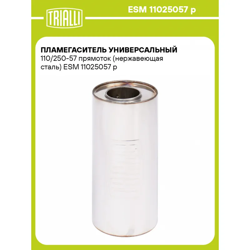Пламегаситель универсальный 110/250-57 прямоток (нержавеющая сталь) Характеристики: Артикул: ESM 11025057 p OEM номера: 11025057 p Материал: Нержавеющая сталь AISI 430 Особенности конструкции:: Труба перфорированная, шерсть нержавеющая, набивка жаро-шумопоглощающая Длина, мм: 250 Диаметр корпуса, мм: 110 Гарантийный срок: 2 года... Читать полностью →