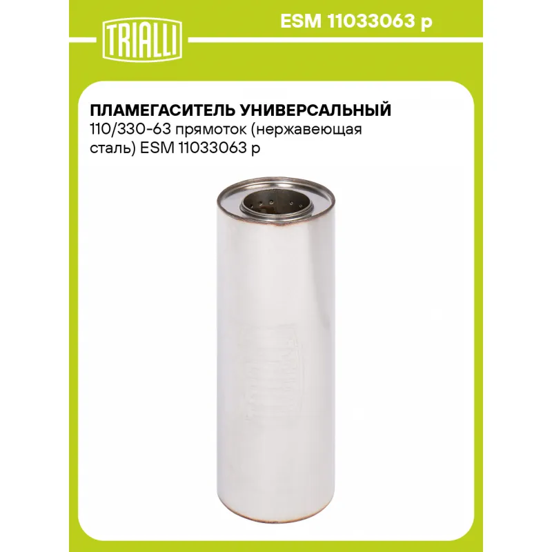 Пламегаситель универсальный 110/330-63 прямоток (нержавеющая сталь) Характеристики: Артикул: ESM 11033063 p OEM номера: 11033063 p Материал: Нержавеющая сталь AISI 430 Особенности конструкции:: Труба перфорированная, шерсть нержавеющая, набивка жаро-шумопоглощающая Длина, мм: 330 Диаметр корпуса, мм: 110 Гарантийный срок: 2 года... Читать полностью →