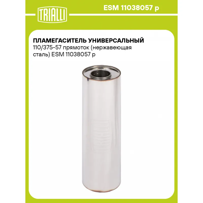 Пламегаситель универсальный 110/375-57 прямоток (нержавеющая сталь) Характеристики: Артикул: ESM 11038057 p OEM номера: 11038057 p Материал: Нержавеющая сталь AISI 430 Особенности конструкции:: Труба перфорированная, шерсть нержавеющая, набивка жаро-шумопоглощающая Длина, мм: 375 Диаметр корпуса, мм: 110 Гарантийный срок: 2 года... Читать полностью →