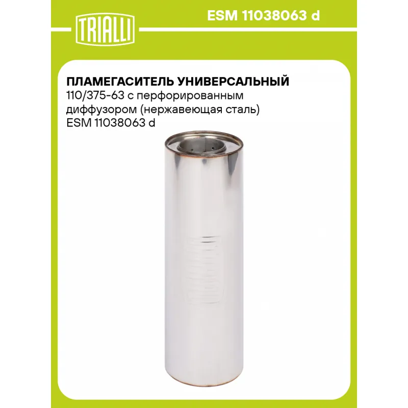 Пламегаситель универсальный 110/375-63 с перфорированным диффузором (нержавеющая сталь) ESM 11038063 d TRIALLI
