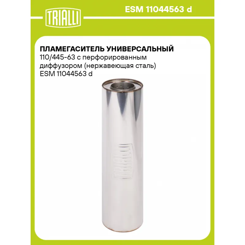 Пламегаситель универсальный 110/445-63 с перфорированным диффузором (нержавеющая сталь) Характеристики: Артикул: ESM 11044563 d OEM номера: 11044563 d Материал: Нержавеющая сталь AISI 430 Особенности конструкции:: Труба перфорированная с диффузором, шерсть нержавеющая, набивка жаро-шумопоглощающая Длина, мм: 445 Диаметр корпуса,... Читать полностью →