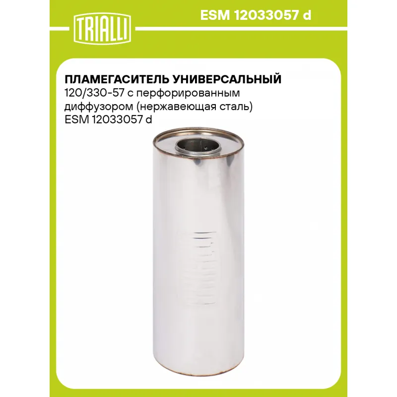 Пламегаситель универсальный 120/330-57 с перфорированным диффузором (нержавеющая сталь) ESM 12033057 d TRIALLI