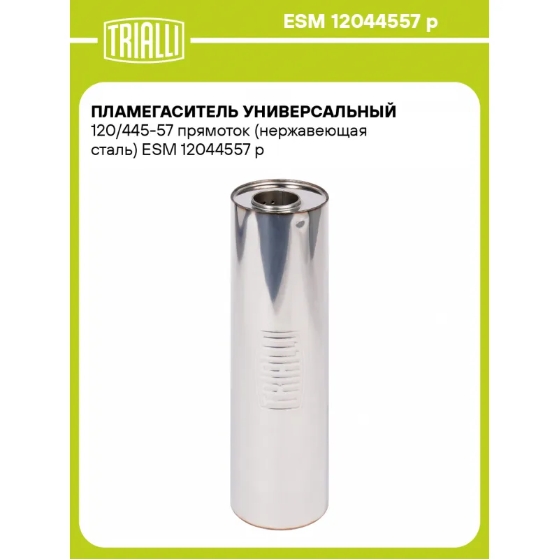 Пламегаситель универсальный 120/445-57 прямоток (нержавеющая сталь) Характеристики: Артикул: ESM 12044557 p OEM номера: 12044557 p Материал: Нержавеющая сталь AISI 430 Особенности конструкции:: Труба перфорированная, шерсть нержавеющая, набивка жаро-шумопоглощающая Длина, мм: 445 Диаметр корпуса, мм: 120 Гарантийный срок: 2 года... Читать полностью →
