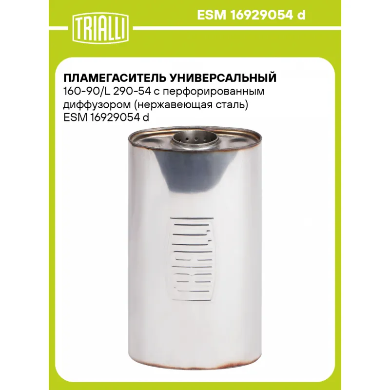 Пламегаситель универсальный 160-90/L 290-54 с перфорированным диффузором (нержавеющая сталь) ESM 16929054 d TRIALLI