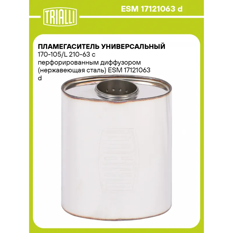 Пламегаситель универсальный 170-105/L 210-63 с перфорированным диффузором (нержавеющая сталь) ESM 17121063 d TRIALLI