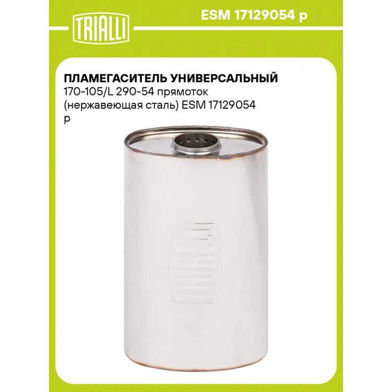 Пламегаситель универсальный 170-105/L 290-54 прямоток (нержавеющая сталь) Характеристики: Артикул: ESM 17129054 p OEM номера: 17129054 p Материал: Нержавеющая сталь AISI 430 Особенности конструкции:: Труба перфорированная, шерсть нержавеющая, набивка жаро-шумопоглощающая Длина, мм: 290 Гарантийный срок: 2 года/60 тыс. Диаметр ко... Читать полностью →