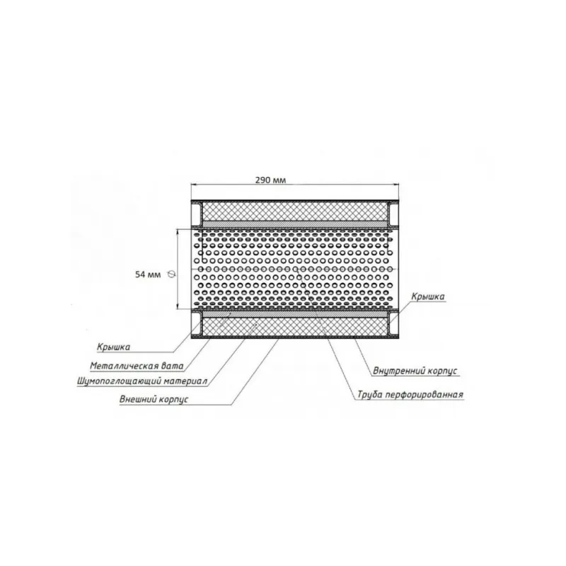| Особенности конструкции: | Труба перфорированная, шерсть нержавеющая, набивка жаро-шумопоглощающая |
