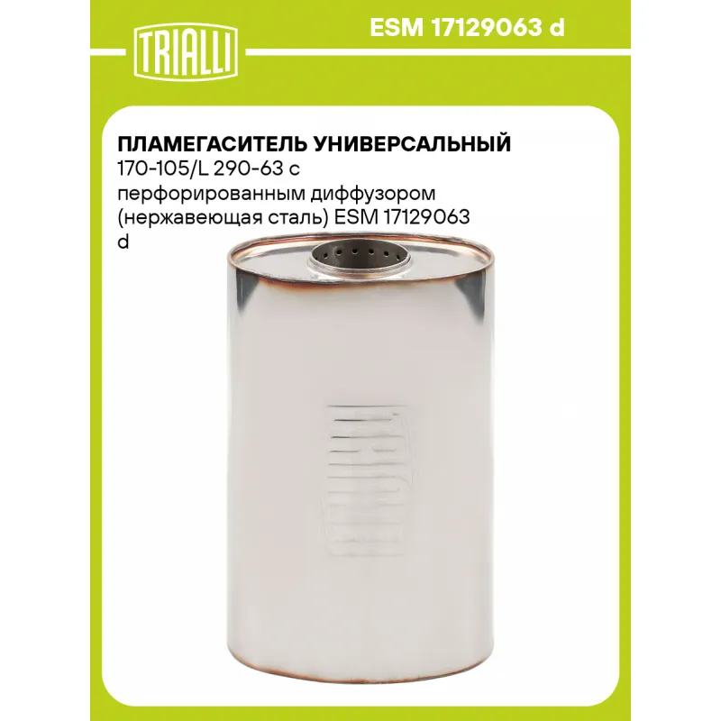 Пламегаситель универсальный 170-105/L 290-63 с перфорированным диффузором (нержавеющая сталь) ESM 17129063 d TRIALLI