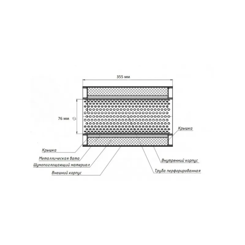 | Особенности конструкции: | Труба перфорированная, шерсть нержавеющая, набивка жаро-шумопоглощающая |