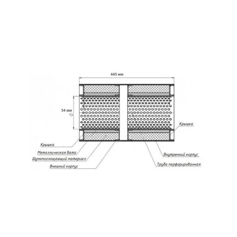 | Особенности конструкции: | Труба перфорированная, шерсть нержавеющая, набивка жаро-шумопоглощающая |