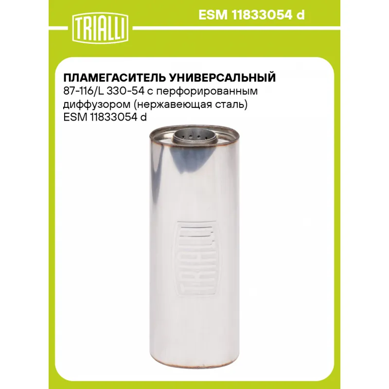 Пламегаситель универсальный 87-116/L 330-54 с перфорированным диффузором (нержавеющая сталь) ESM 11833054 d TRIALLI