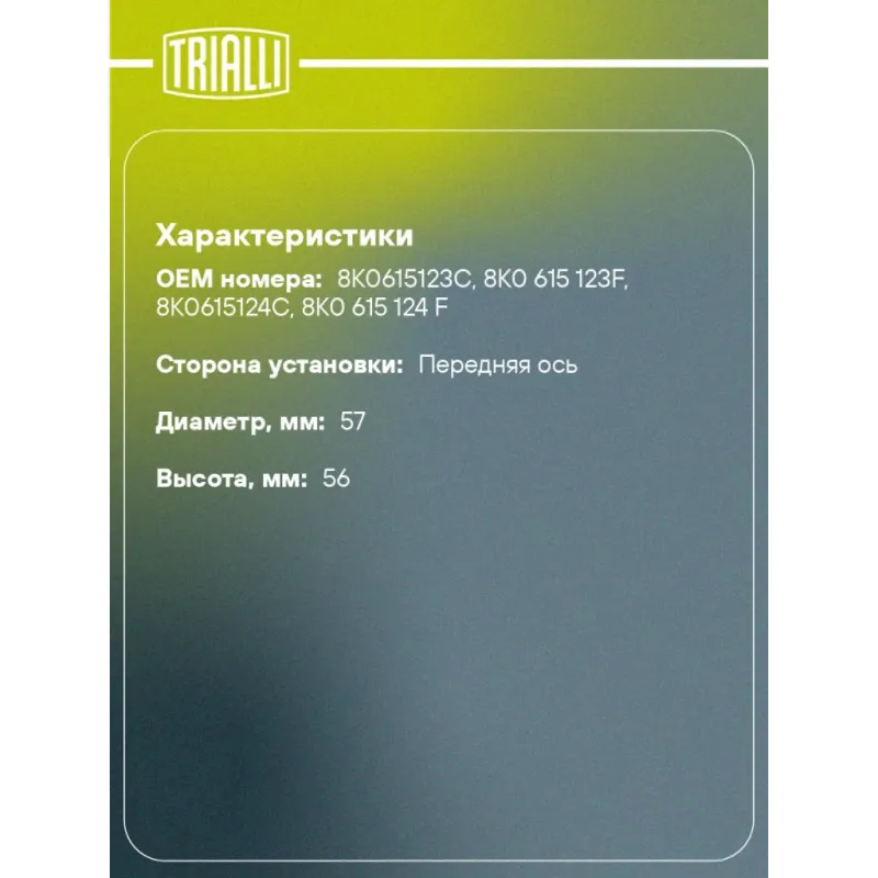 | Количество на автомобиль | 2 |
