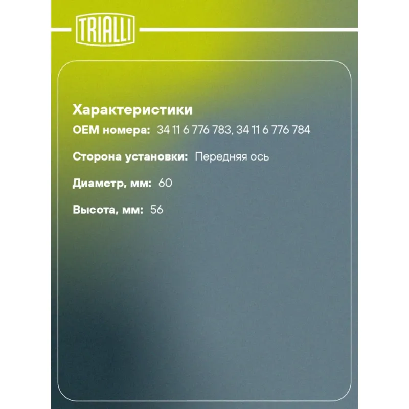 | Количество на автомобиль | 2 |