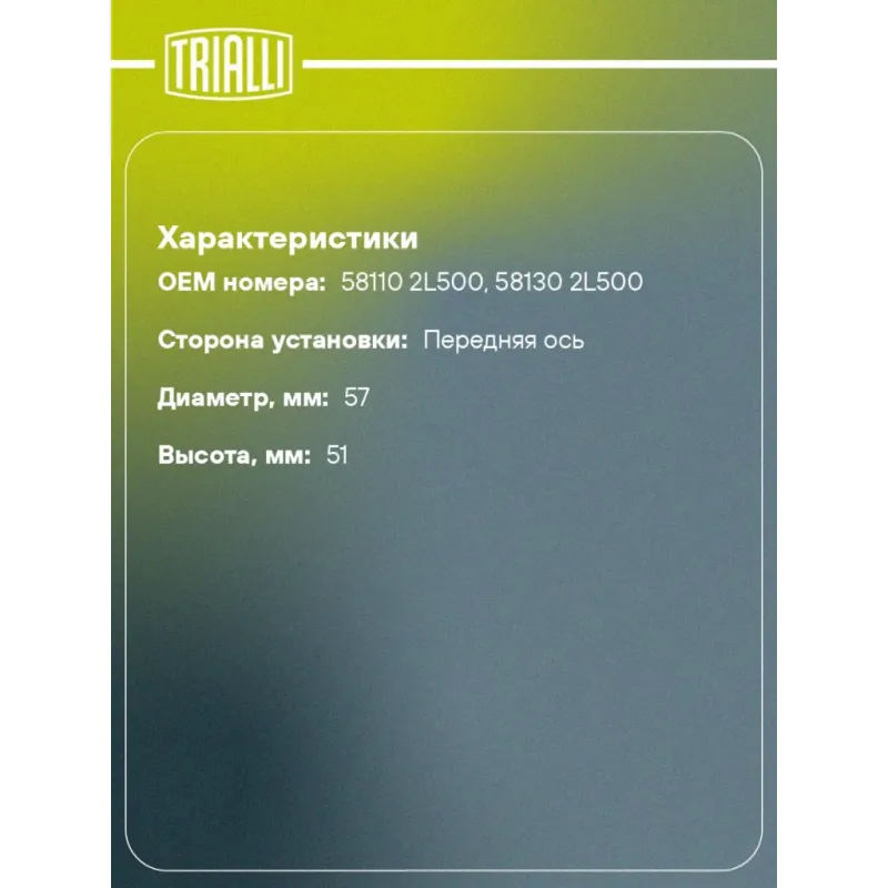 Поршень суппорта для автомобилей Hyundai i30 (07-) передний d=57мм Характеристики: Артикул: RCF 205102 OEM номера: 58110 2L500, 58130 2L500 Высота, мм: 51 Тормозная система: MOBIS Диаметр, мм: 57 Гарантийный срок: 2 года / 60 000 км Сторона установки: Передняя ось Сопутствующие товары: Суппорты тормозные: CF 205101, CF 205102 Со... Читать полностью →