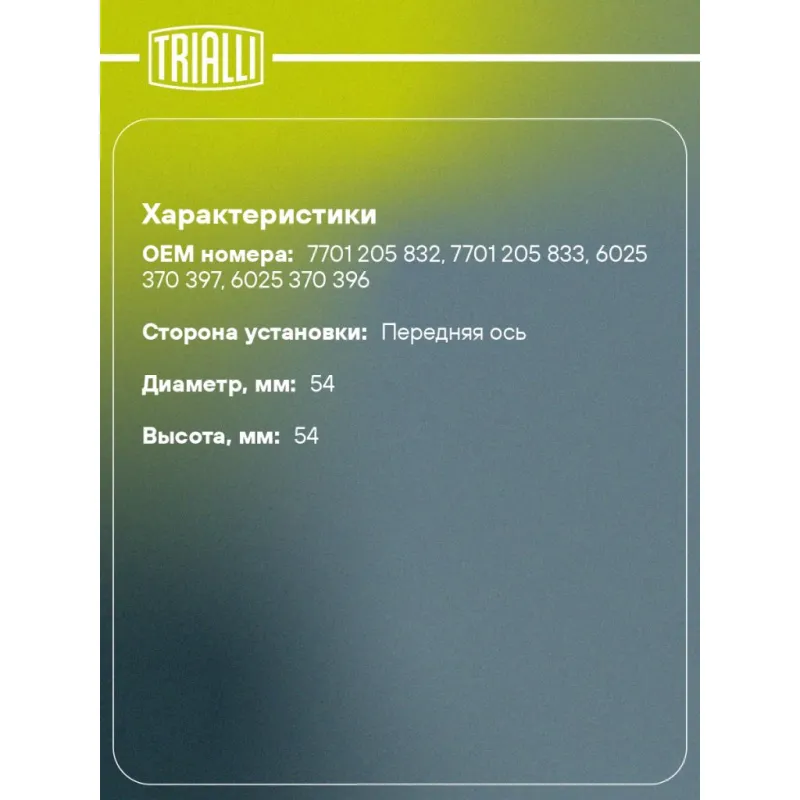 | Диаметр, мм | 54 |