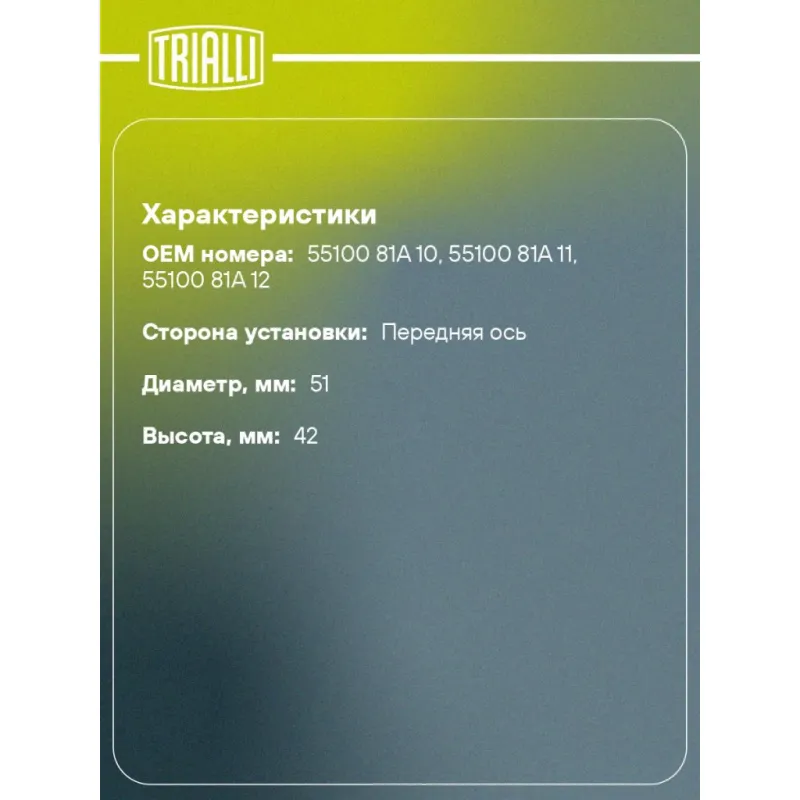 Поршень суппорта для автомобилей Suzuki Jimny II (98-) / III (03-) передний d=51мм Характеристики: Артикул: RCF 000098 OEM номера: 55100 81A 10, 55100 81A 11, 55100 81A 12 Высота, мм: 42 Тормозная система: AISIN Диаметр, мм: 51 Гарантийный срок: 2 года / 60 000 км Сторона установки: Передняя ось Сопутствующие товары: Суппорты то... Читать полностью →