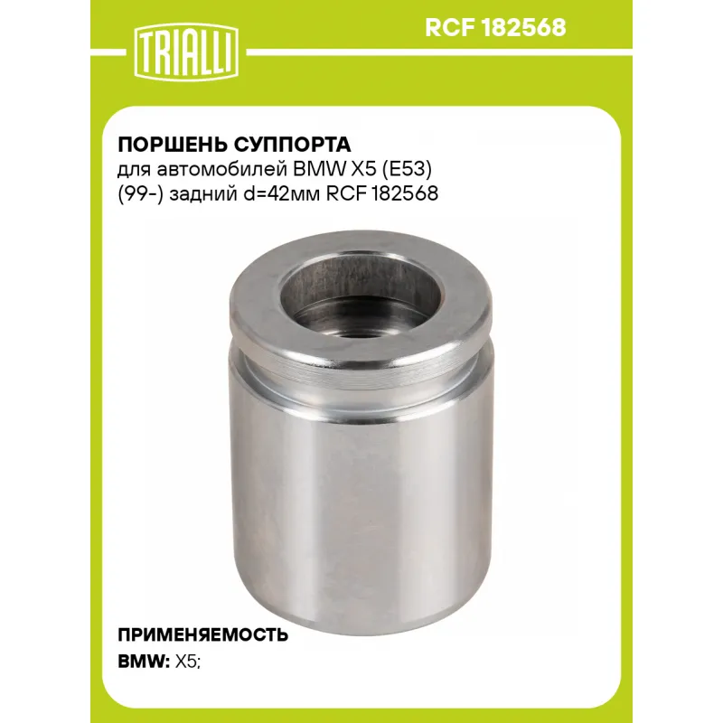 Поршень суппорта для автомобилей BMW X5 (E53) (99-) задний d=42мм Характеристики: Артикул: RCF 182568 OEM номера: 34216768443, 34216768444, 34 21 1 166 235, 34 21 1 166 236 Тормозная система: ATE Диаметр, мм: 42 Сторона установки: Задняя ось Сопутствующие товары: Суппорты тормозные: CF 182567, CF 182568 Сопутствующие товары: Ремкомплекты суппорта: RCF 182567 Количество на автомобиль: 2 Высота, мм: 52 Гарантийный срок: 2 года / 60 000 км Товарная линейка: BLACK Комплектация: Поршень суппорта тормозного - 1 шт Гарантия: от 1 года.