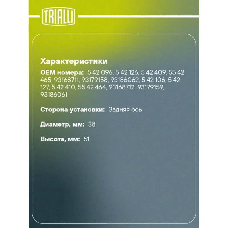Поршень суппорта для автомобилей Opel Astra H (04-) / Astra G (98-) зад. задний d=38мм (диск 264 / 10) Характеристики: Артикул: RCF 550112 OEM номера: 5 42 096, 5 42 126, 5 42 409, 55 42 465, 93168711, 93179158, 93186062, 5 42 106, 5 42 127, 5 42 410, 55 42 464, 93168712, 93179159, 93186061 Тормозная система: TRW Диаметр, мм: 38 Сторона установки: Задняя ось Сопутствующие товары: Суппорты тормозные: CF 550111, CF 550112 Сопутствующие товары: Ремкомплекты суппорта: RCF 550111 Сопутствующие товары: Скобы суппорта: CF 550121 Количество на автомобиль: 2 Высота, мм: 51 Особенности конструкции:: Диск 264/10 Гарантийный срок: 2 года / 60 000 км Товарная линейка: BLACK Комплектация: Поршень суппорта тормозного - 1 шт Гарантия: от 1 года.