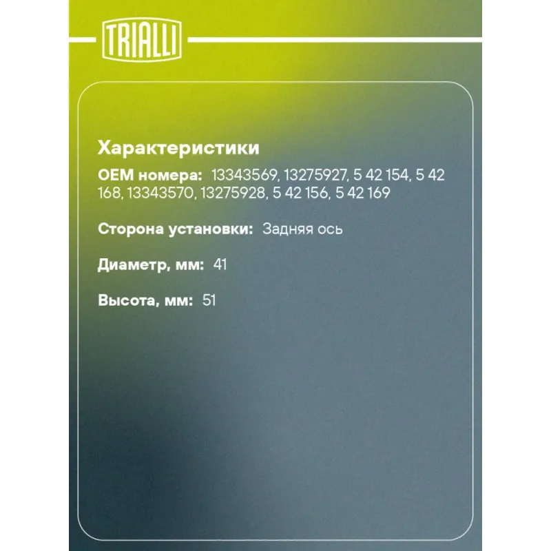 | Количество на автомобиль | 2 |