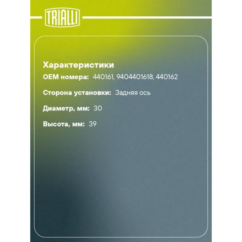 | Сторона установки | Задняя ось |