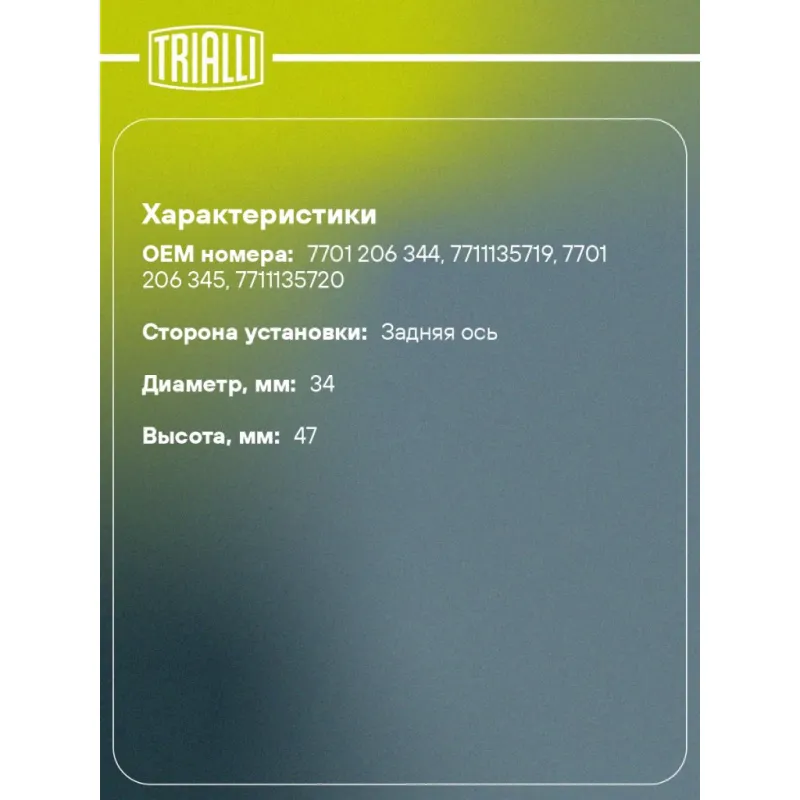| Количество на автомобиль | 2 |