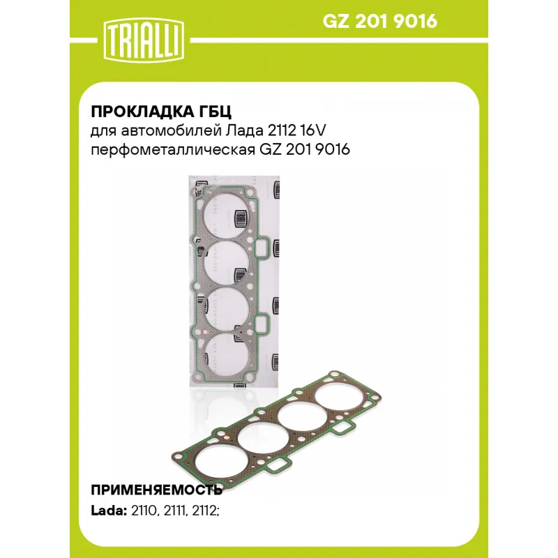 Прокладка ГБЦ для автомобилей Лада 2112 16V перфометаллическая Характеристики: Артикул: GZ 201 9016 OEM номера: 2112-1003020 Гарантийный срок: 2 года/60 000 км. Количество на автомобиль: 1 Толщина, мм: 1,75 Особенности конструкции:: d=82 мм Толщина, мм (номинальная): 1,6 Материал: перфометалл Ширина в затяге, мм: 1.47 Диаметр (мм): 83.5 Подходит для авто: ВАЗ 2110, 2111, 2112 Для проверки применяемости отправьте VIN автомобиля через вкладку "Есть вопросы о товаре?" Гарантия: от 1 года.